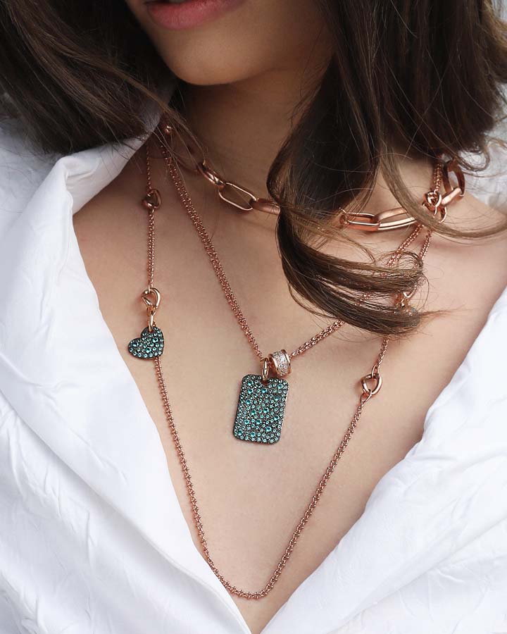 Pendente Alisei Cuore Passionale in argento rosato con pavè di zirconi