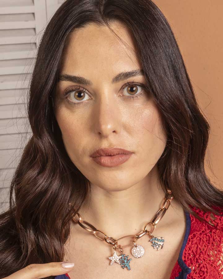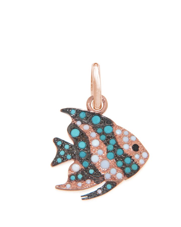 Pendente Alisei Pesce Viaggia con me in argento rosato con turchese e agata