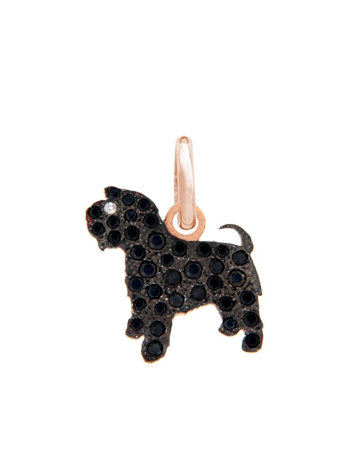 Pendente Alisei Cane “Sii Fedele”” in argento rosato con pavè di zirconi neri