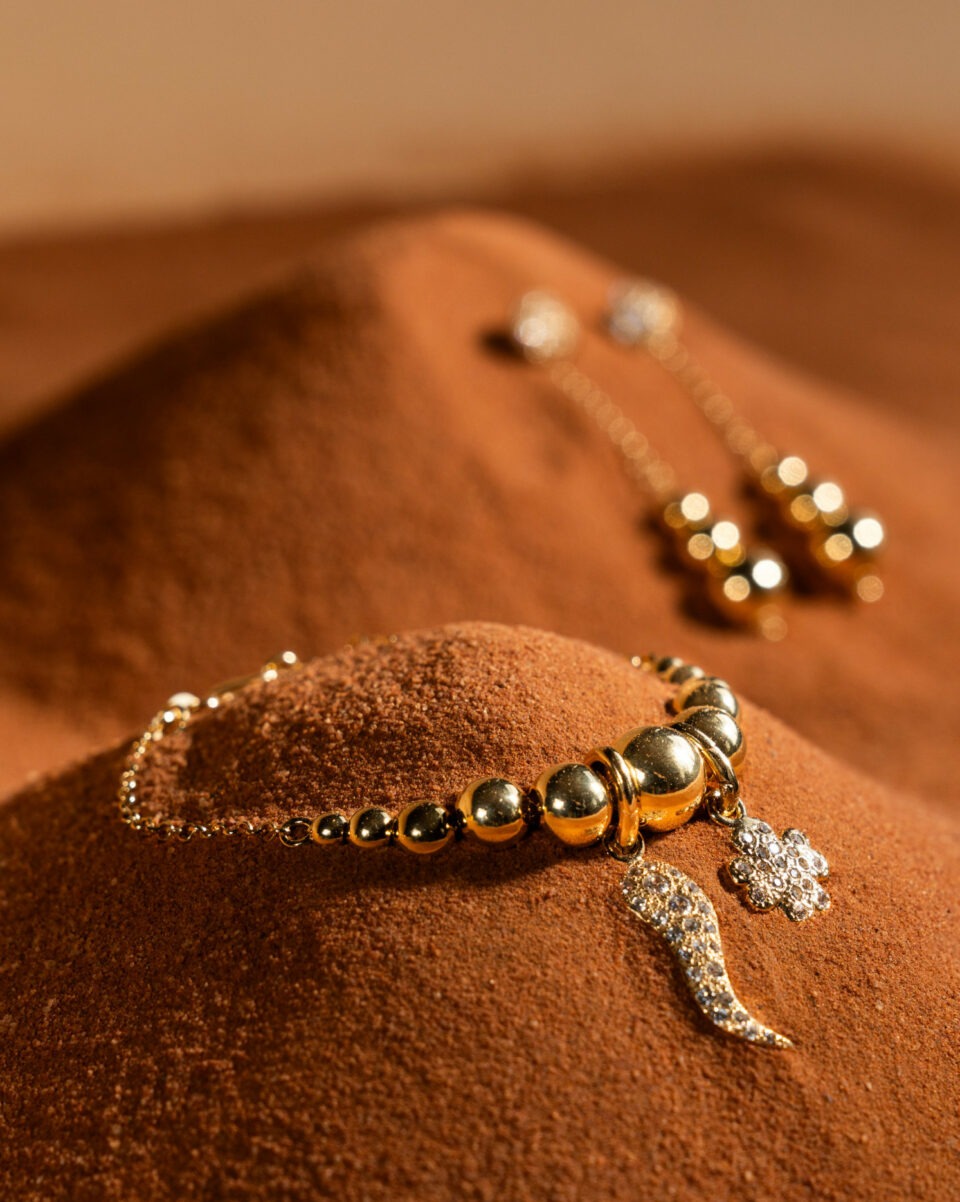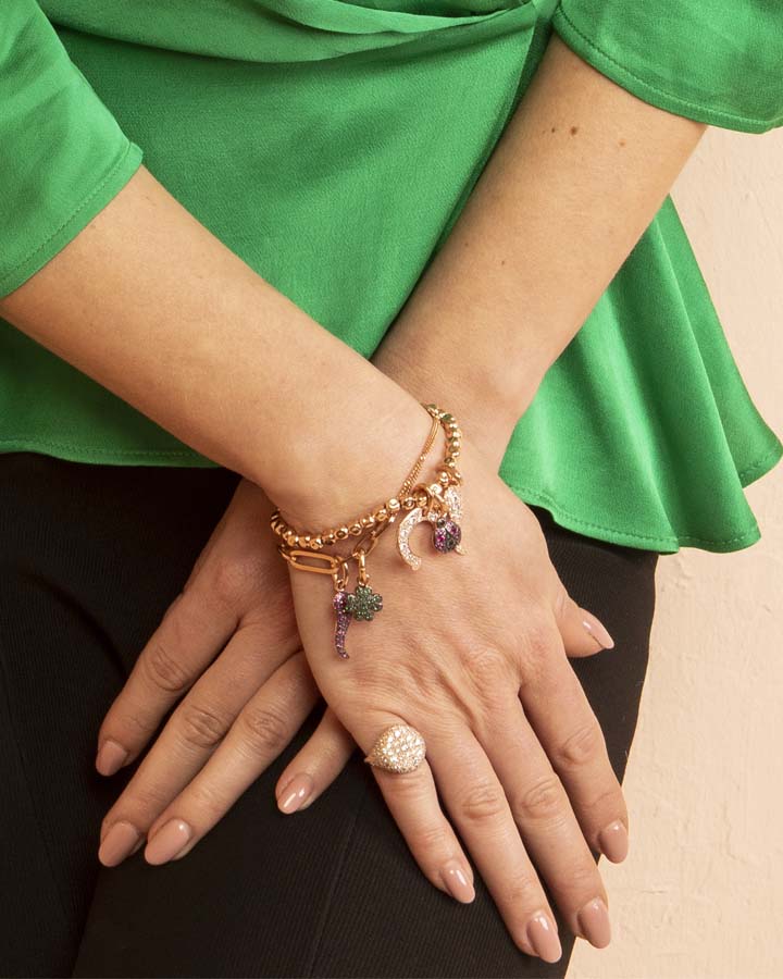 Collana Alisei Rolò argento giallo con anelli a pavè di zirconi