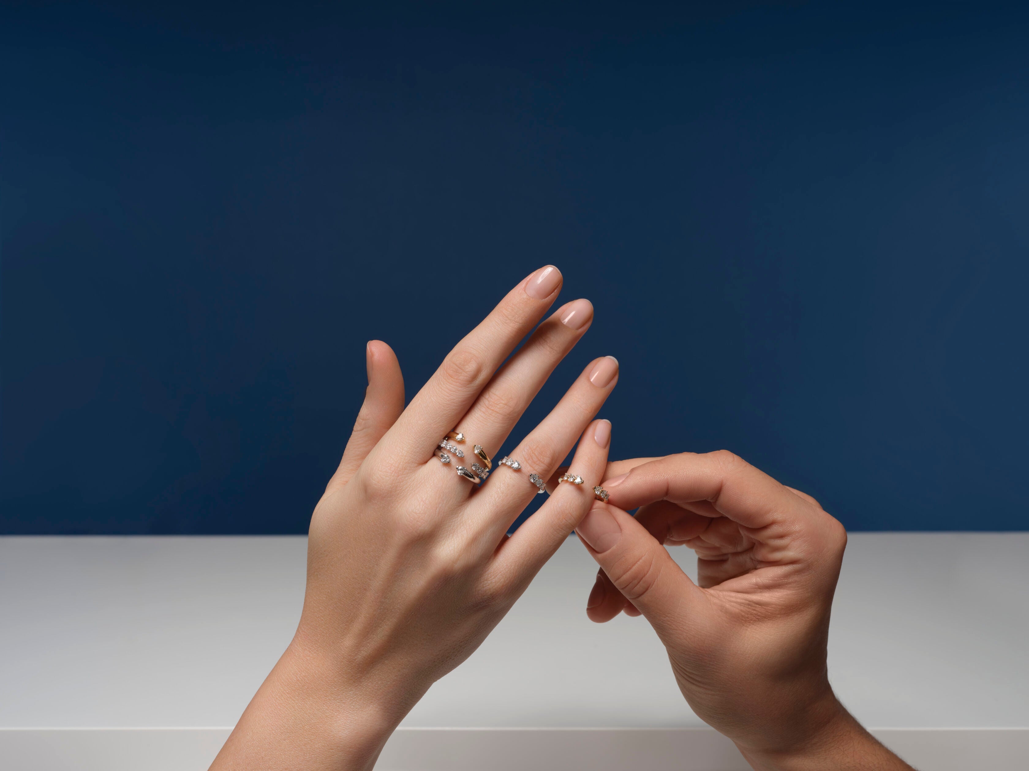 Indossali insieme o da soli, oppure affiancali al tuo solitario per creare un abbraccio prezioso.