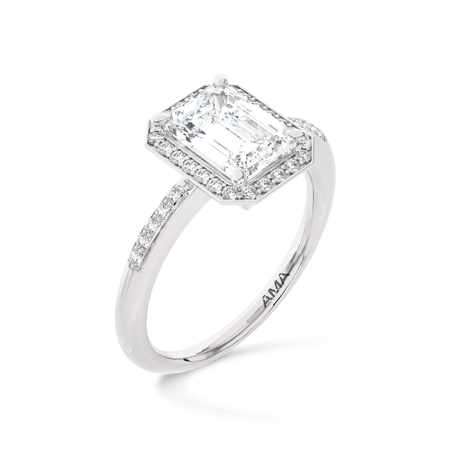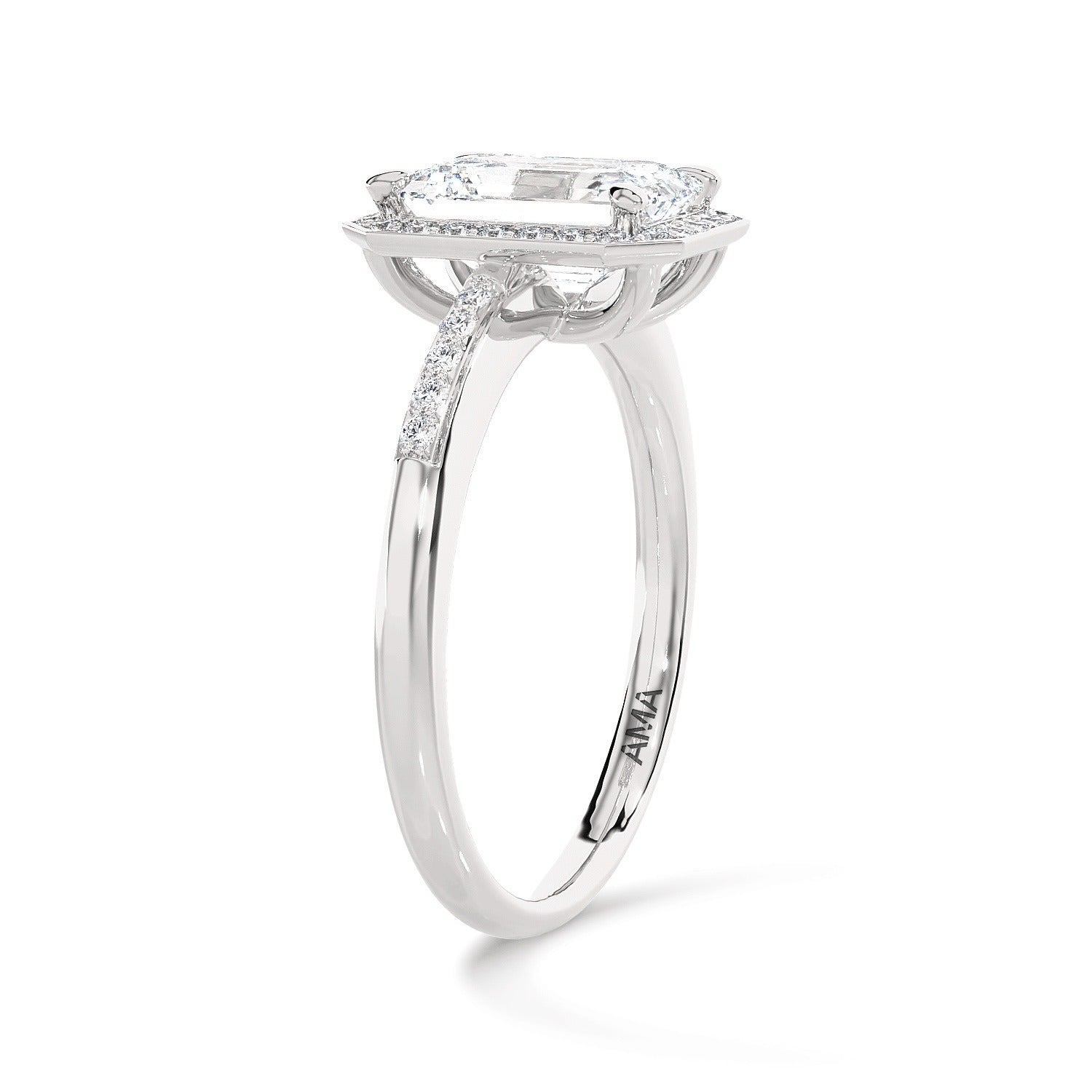 Anello Aurora AMA Taglio Smeraldo in oro bianco e diamanti lab