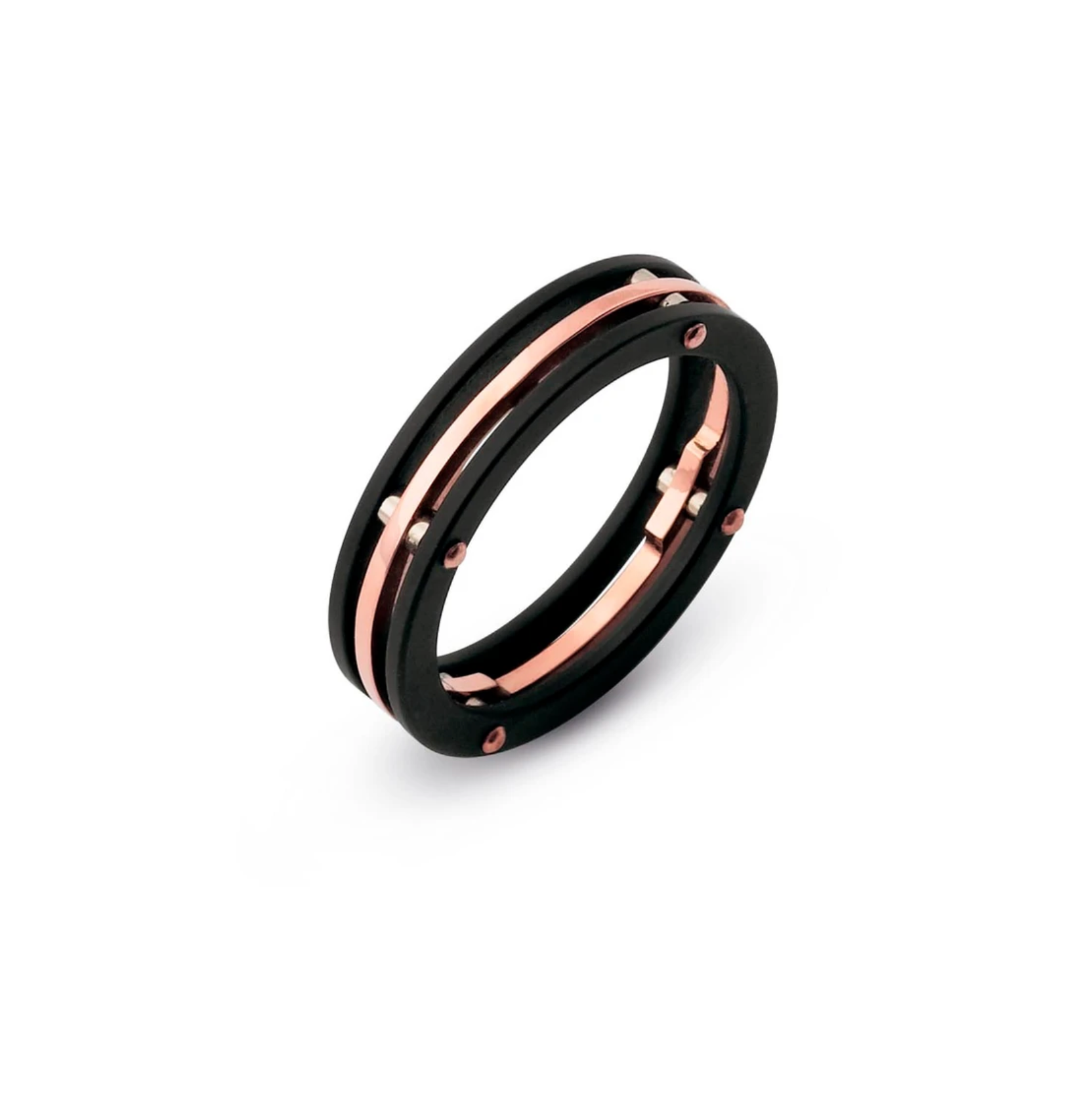 Anello Barakà Kardano in oro rosa 18kt, acciaio e diamanti neri