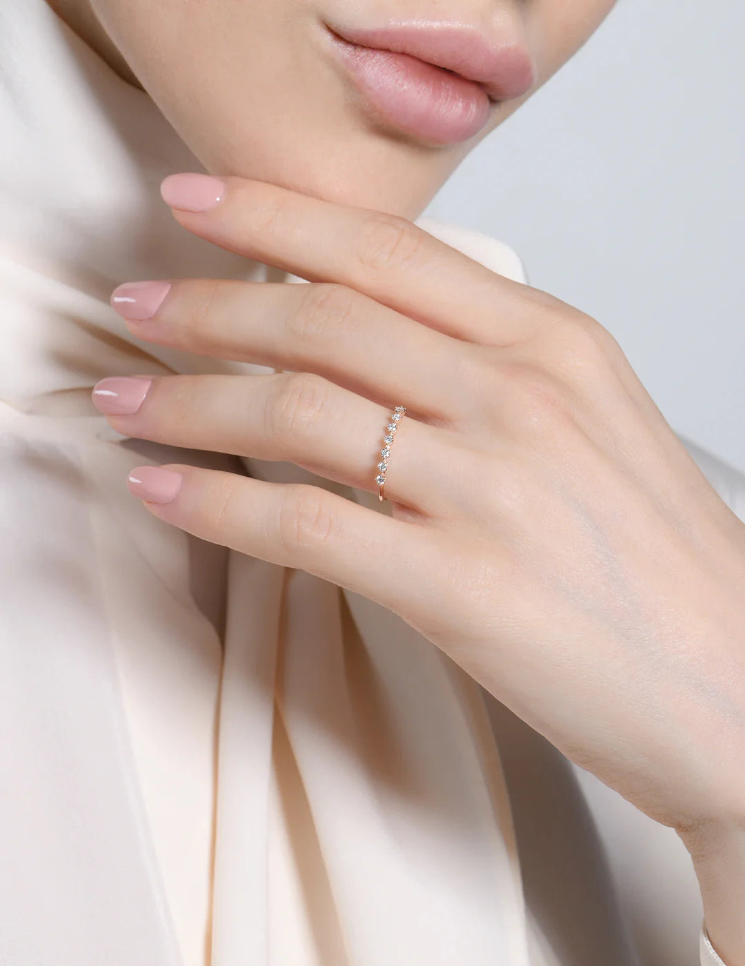 L'anello con 7 diamanti è spesso il primo dono fatto come simbolo d'amore o regalato in occasione del fidanzamento. L'anello riviere in oro rosa 18kt e diamanti rappresenta valori profondi come passione, amore e fedeltà.