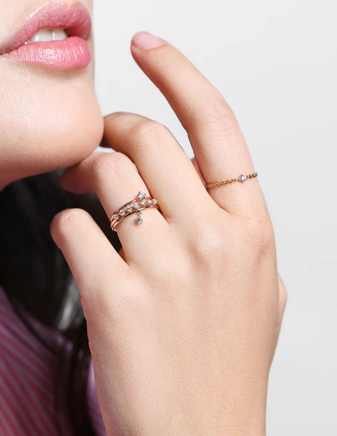 Anello 7 pietre in oro rosa 18 kt