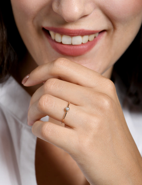 Anello Burato White Classic Solitaire in Oro rosa 18 KT e Diamante