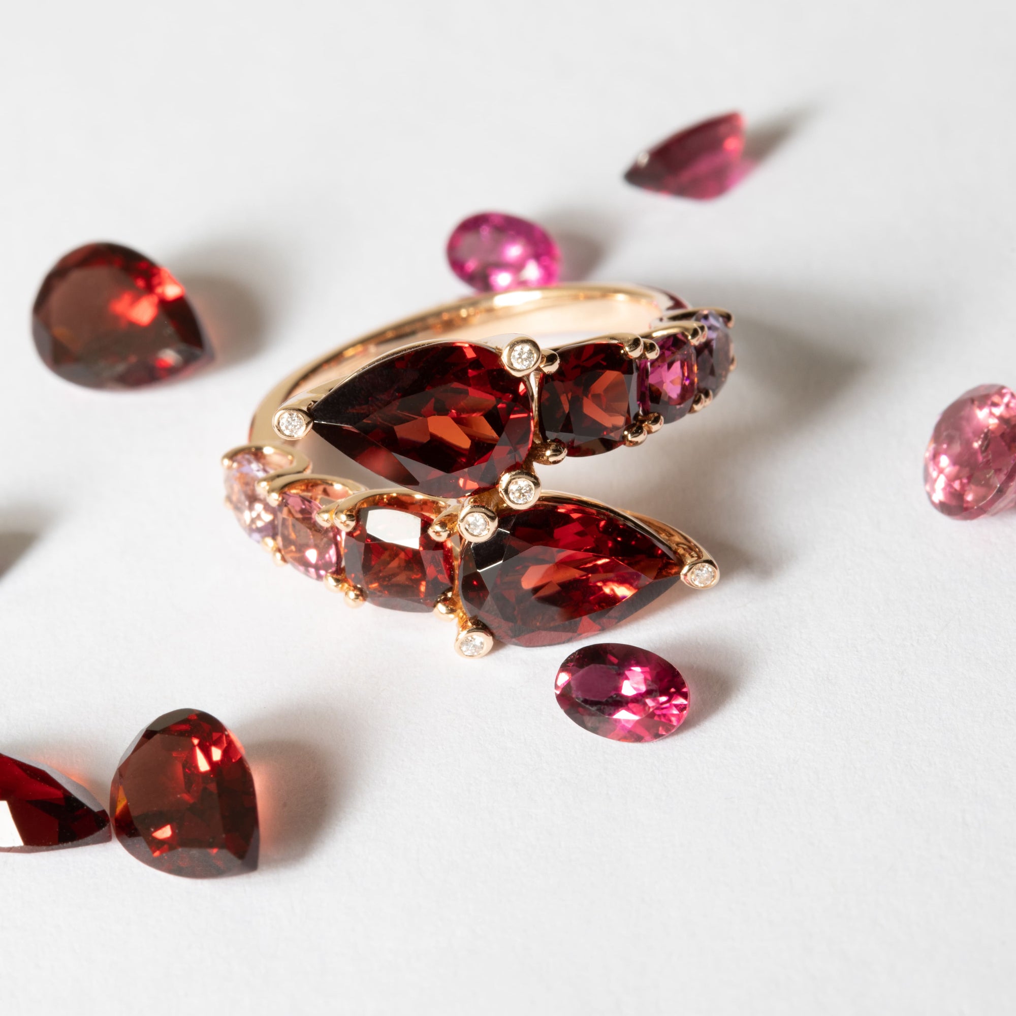 Anello Contrariè Iris Ponte Vecchio Gioielli con Granato, Tormalina e Ametista