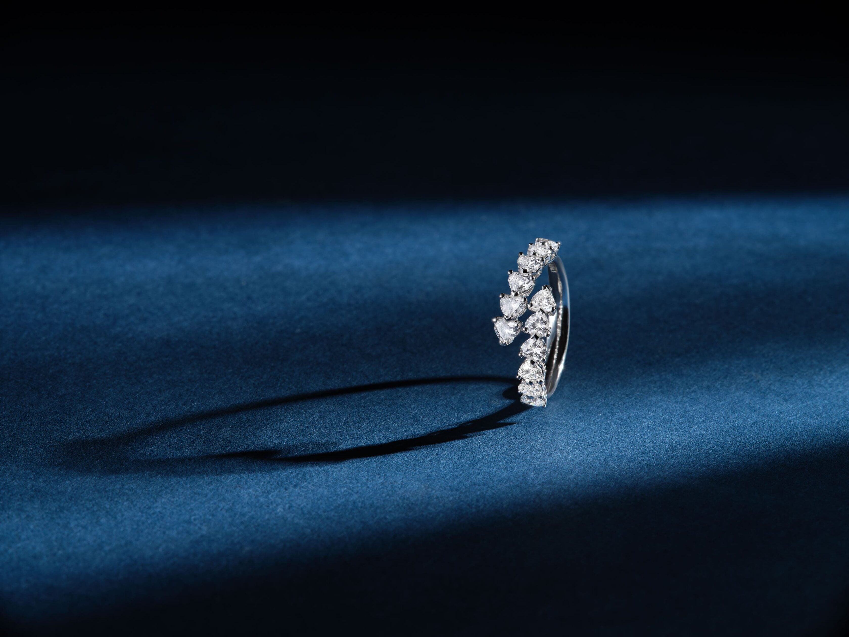 Anello contrariè realizzato in oro bianco 18 kt e diamanti taglio brillante forma cuore CT 1,52.