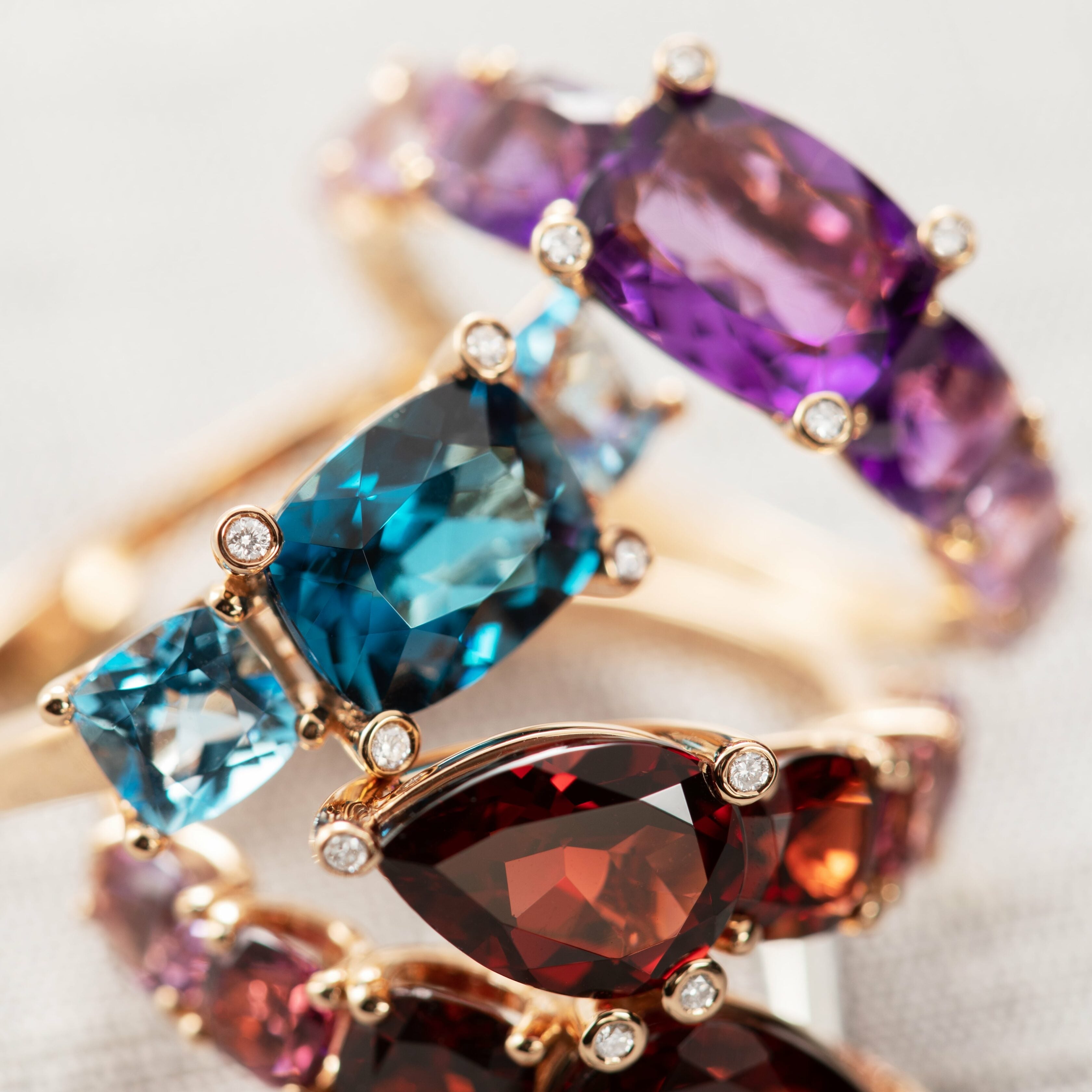 Topazi, citrini, ametiste, granati e diamanti sono i protagonisti della collezione Iris by Ponte Vecchio Gioielli. Tagli e colori dégradé la rendono espressiva ed unica come ogni donna.