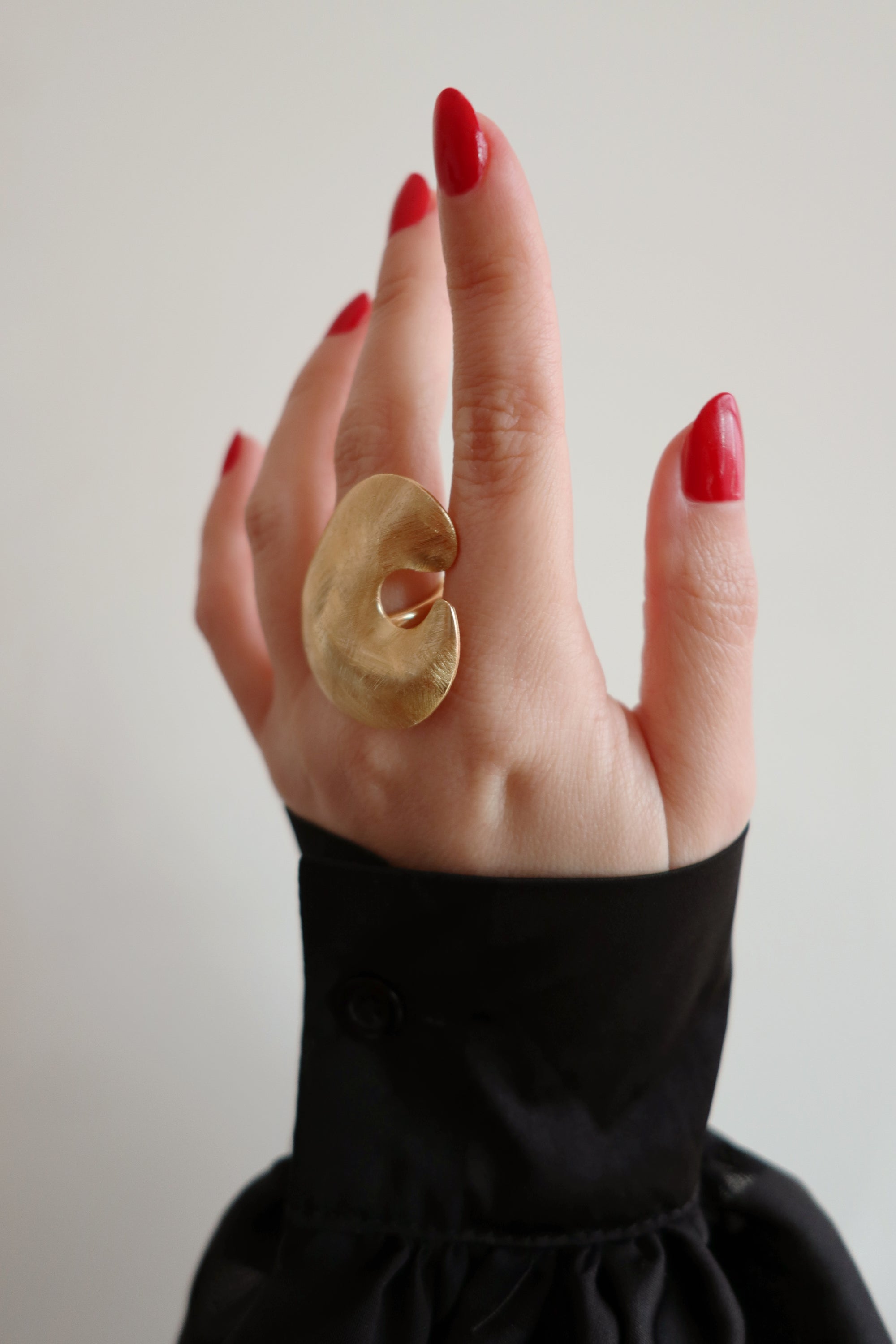 Un anello sinuoso lavorato artigianalmente da orafi italiani. La collezione Greta rappresenta una donna particolare ed elegante.