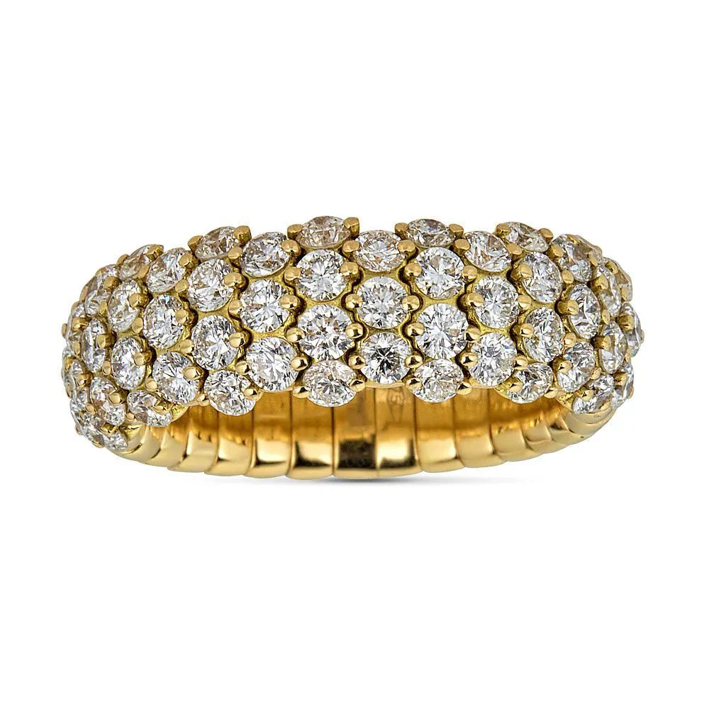 Questo delizioso anello stretch in oro 18kt presenta 3.67ct di diamanti taglio rotondo brillante. Meccanismo a molla di grande qualità. Realizzazione artigianale in Italia da ZYDO Italian Jewelry.