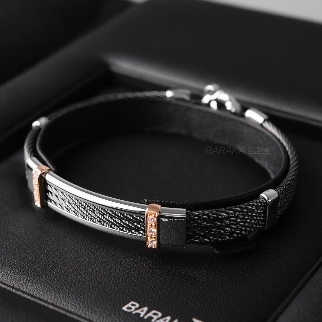 Bracciale Barakà 316L realizzato in acciaio inossidabile con pvd nero e oro rosa 18kt e diamanti