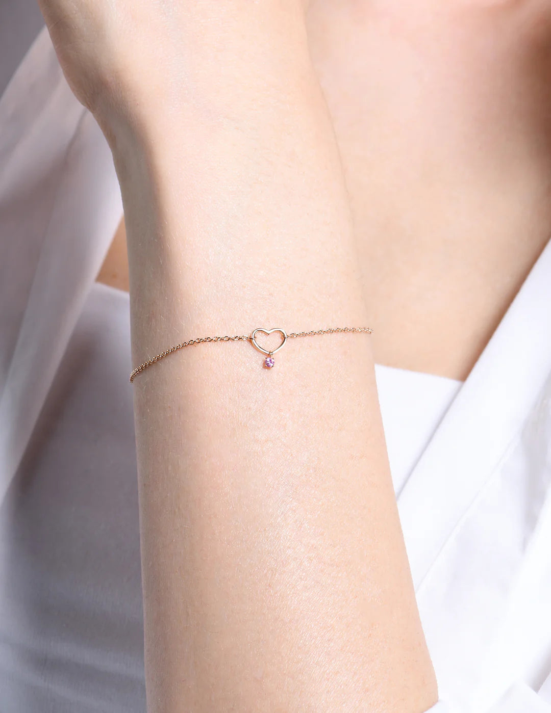 Sempre più dolce, sempre più romantico. Celebra l'amore più grande fra tutti con Pink Heart, il braccialetto a forma di cuore con zaffiro.
