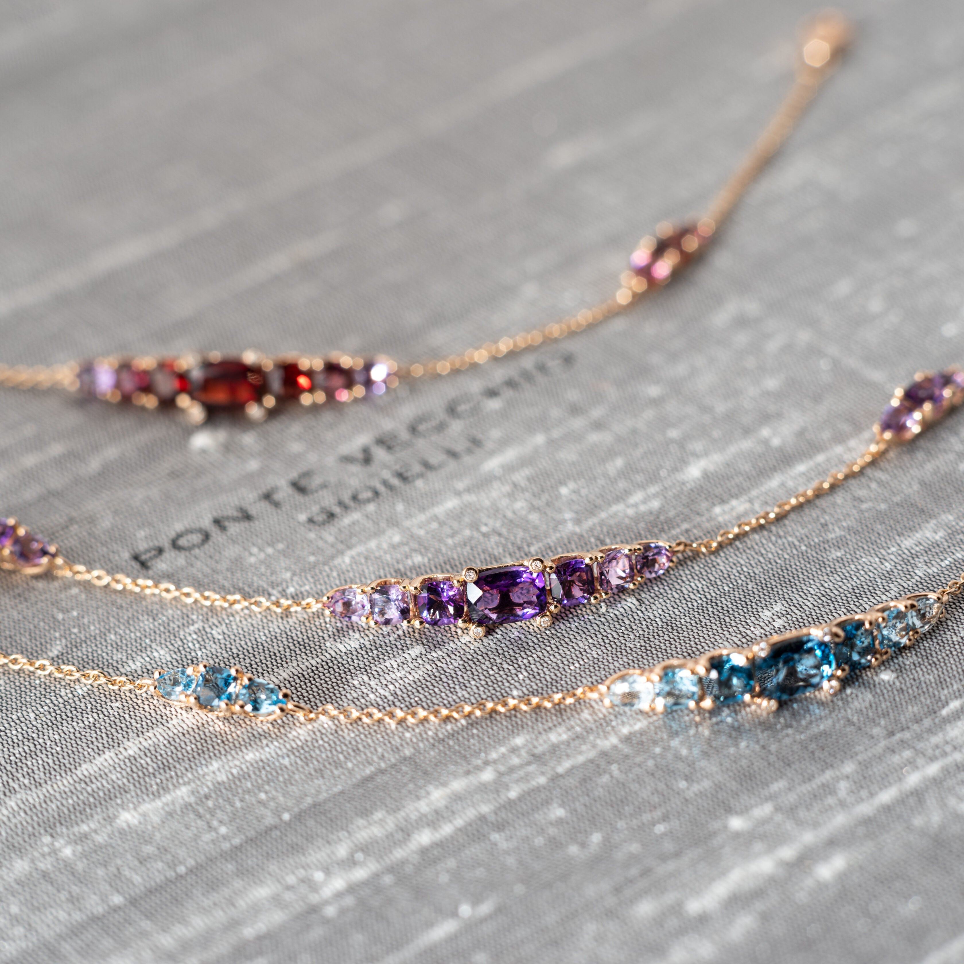 Topazi, citrini, ametiste, granati e diamanti sono i protagonisti della collezione Iris by Ponte Vecchio Gioielli. Tagli e colori dégradé la rendono espressiva ed unica come ogni donna.