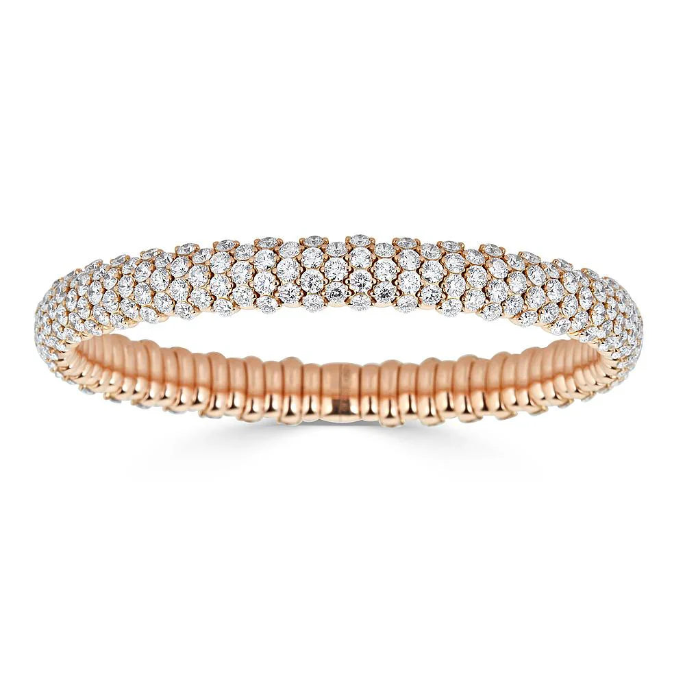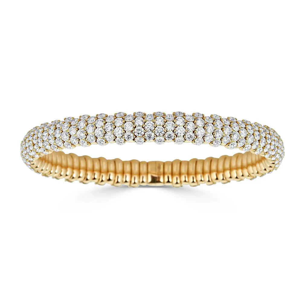 Questo fantastico bracciale in oro 18kt stretch presenta 10.39 ct di scintillanti diamanti naturali taglio rotondo brillante. L'azione di allungamento espanso rende questo braccialetto unico, facile e confortevole da indossare. La sua eccezionale fabbricazione assicura che le molle siano robuste e resistenti. Realizzato a mano in Italia da ZYDO Italian Jewelry. Disponibile su ordinazione in più carature e in tutti e tre i colori dell'oro.