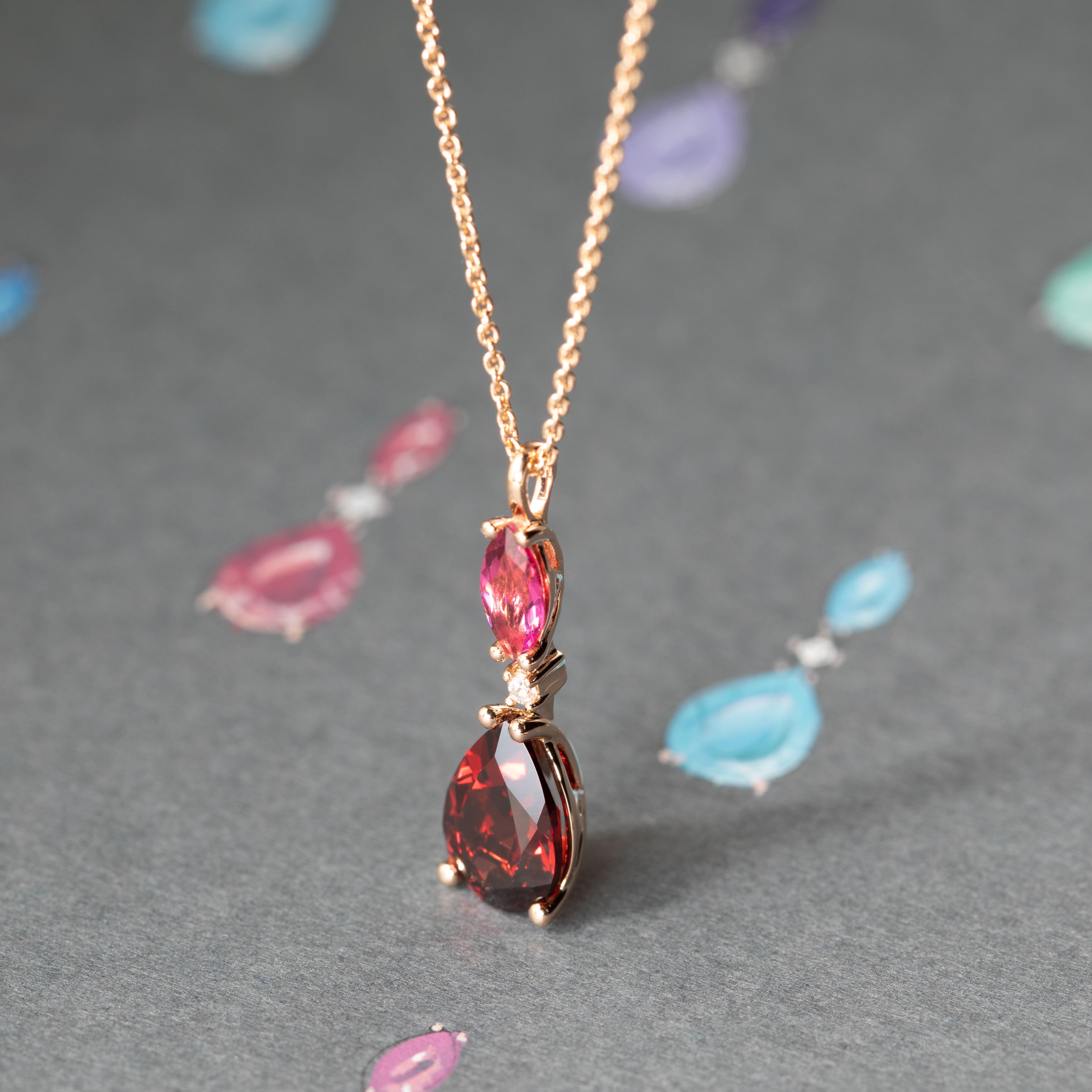 Girocollo pendente realizzato in oro rosa 18kt 750/1000 impreziosito con Granato e diamanti