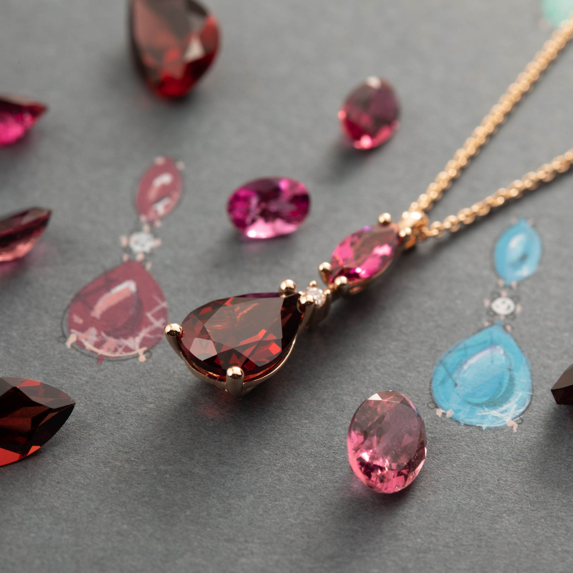 Collana Iris Ponte Vecchio Gioielli con pendente Granato, Tormalina e diamanti