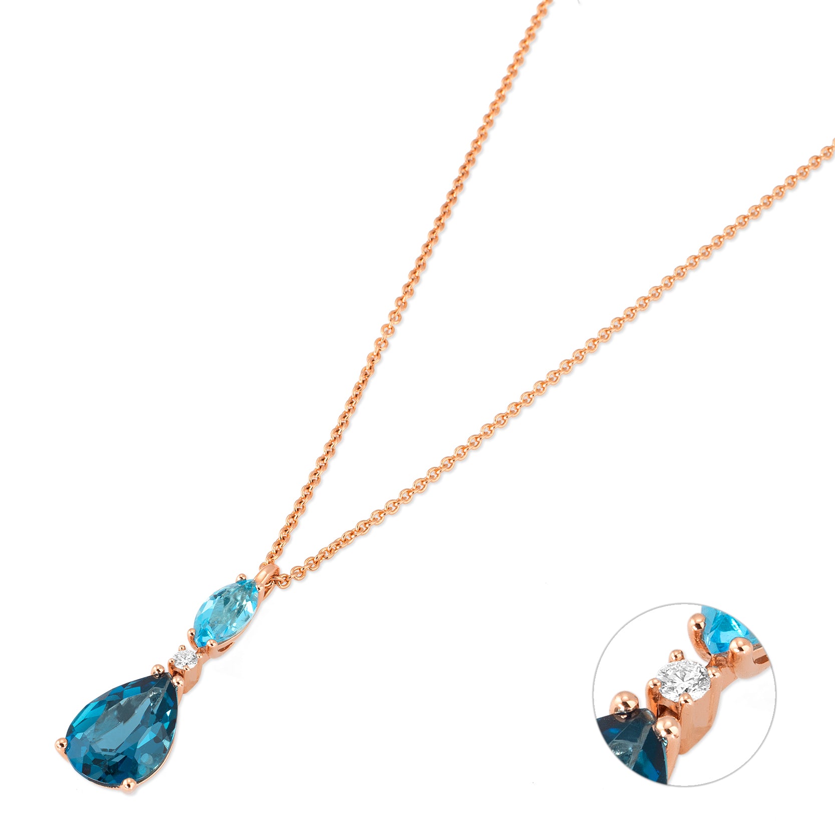 Girocollo pendente realizzato in oro rosa 18kt 750/1000 impreziosito con Topazio e diamanti