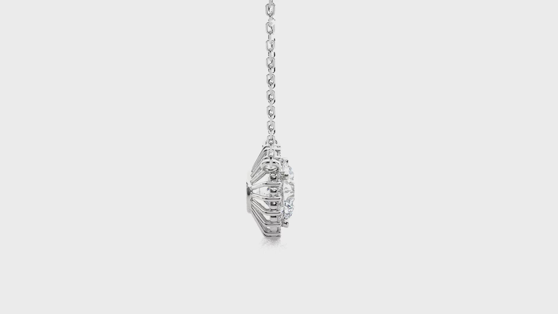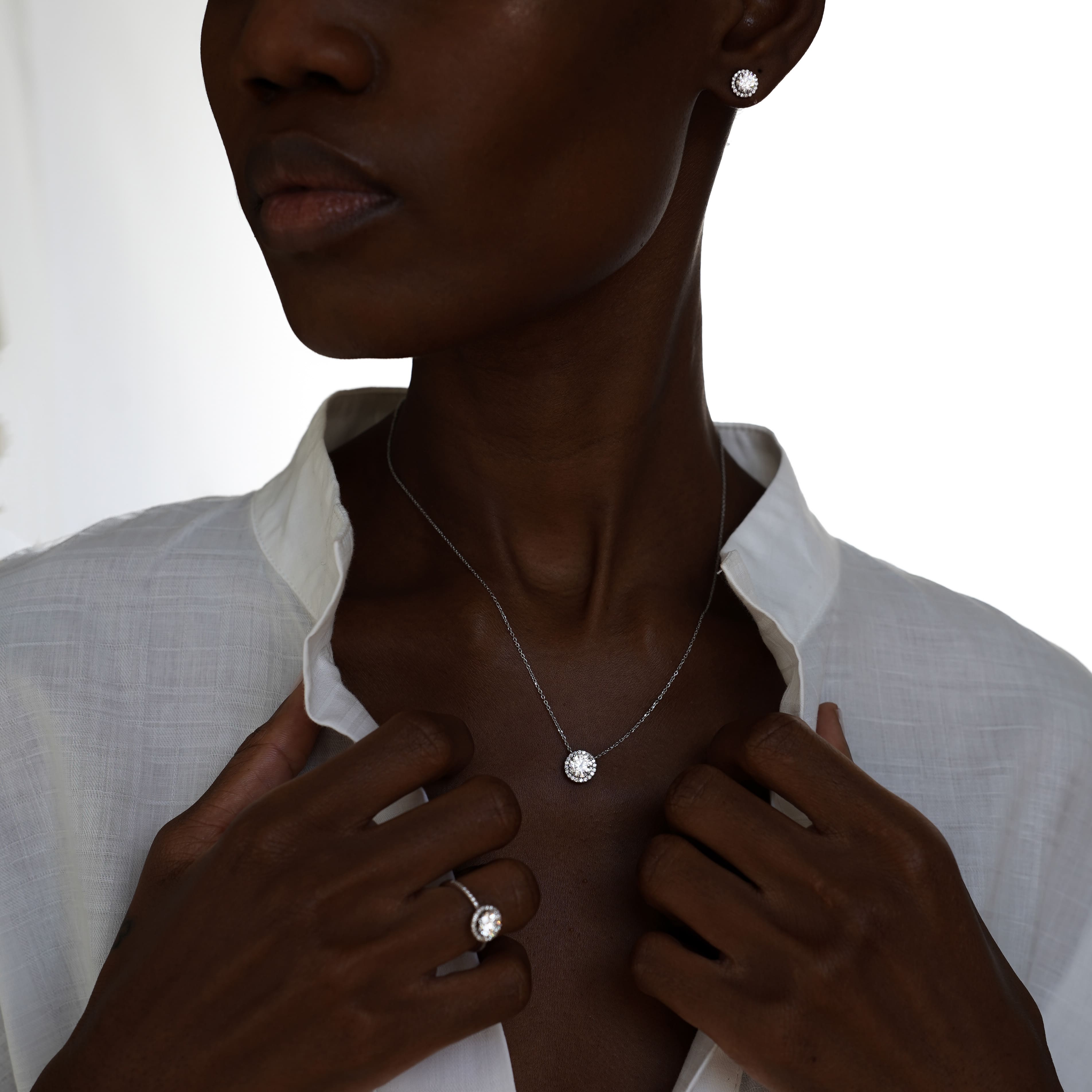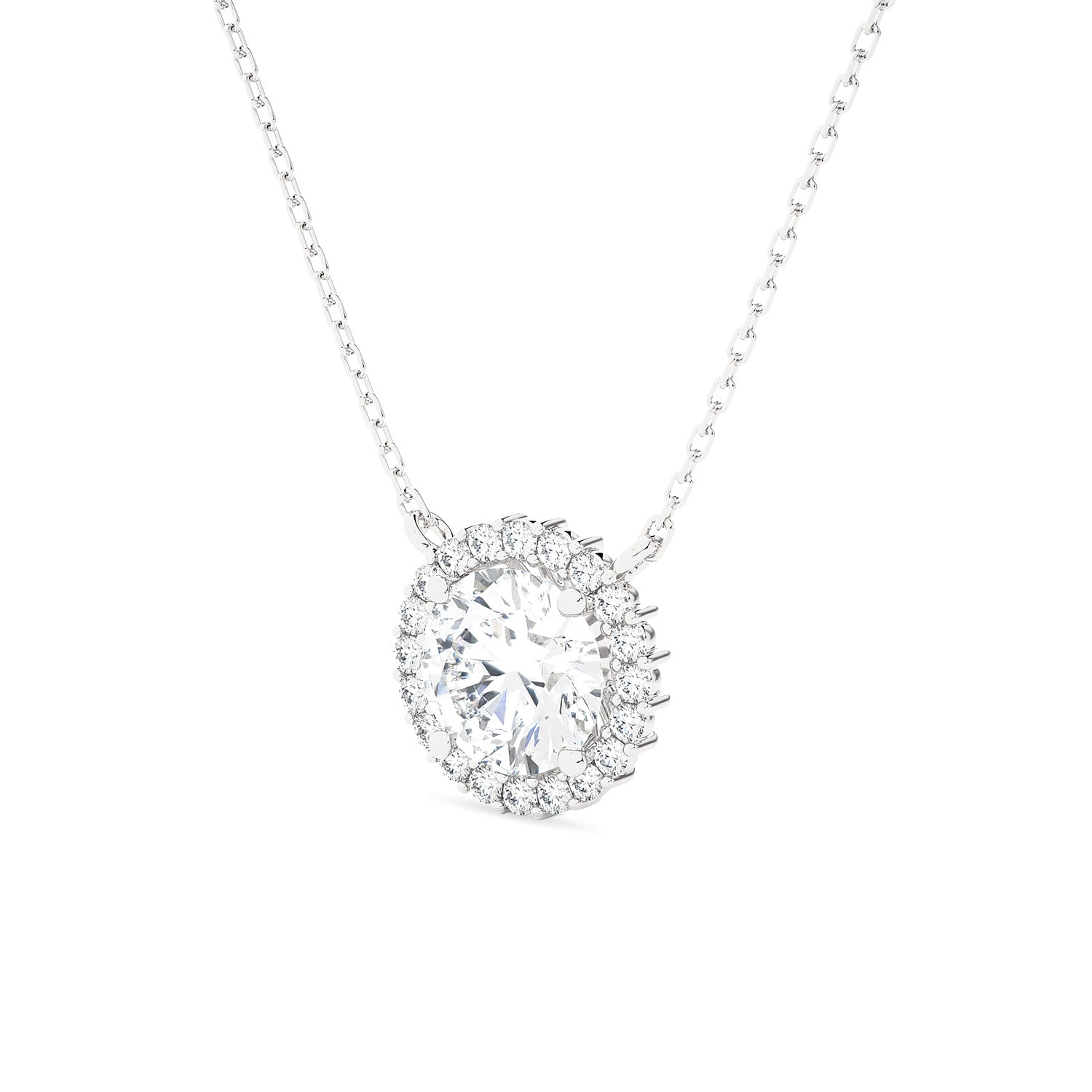 Collana realizzata in oro bianco riciclato 18kt impreziosita con diamante lab grown taglio rotondo brillante da 1,00 CT e 20 diamanti AMA taglio brillante da 0.007 ct per un totale di 1.14 ct.
