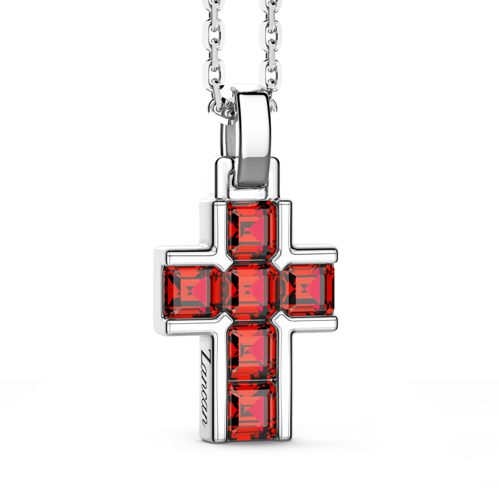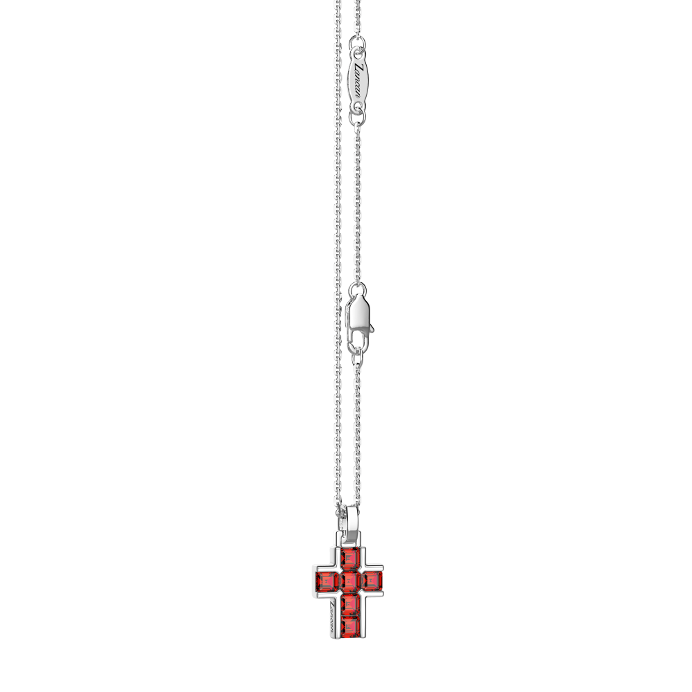 Collana Zancan in argento 925 con pendente a croce con pietre naturali, disponibili in quattro colorazioni.