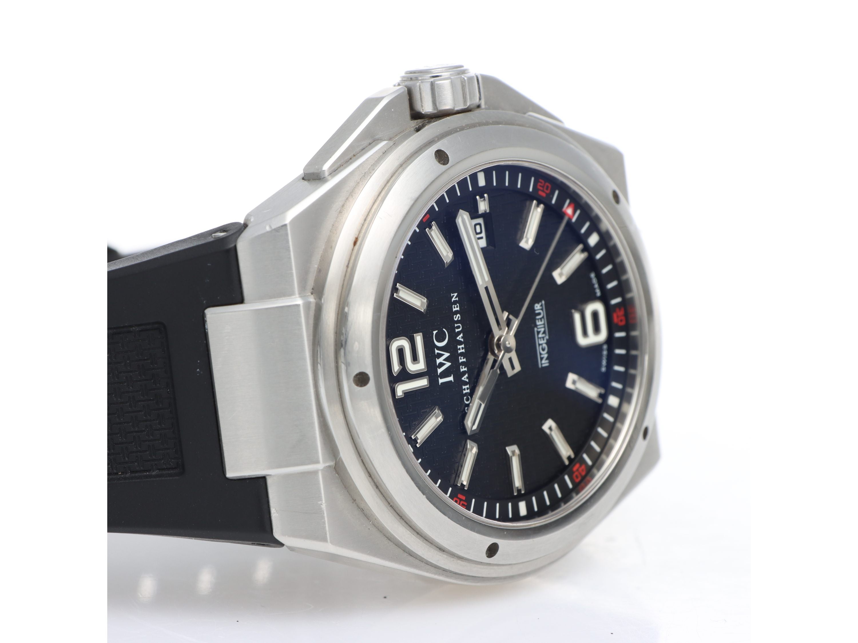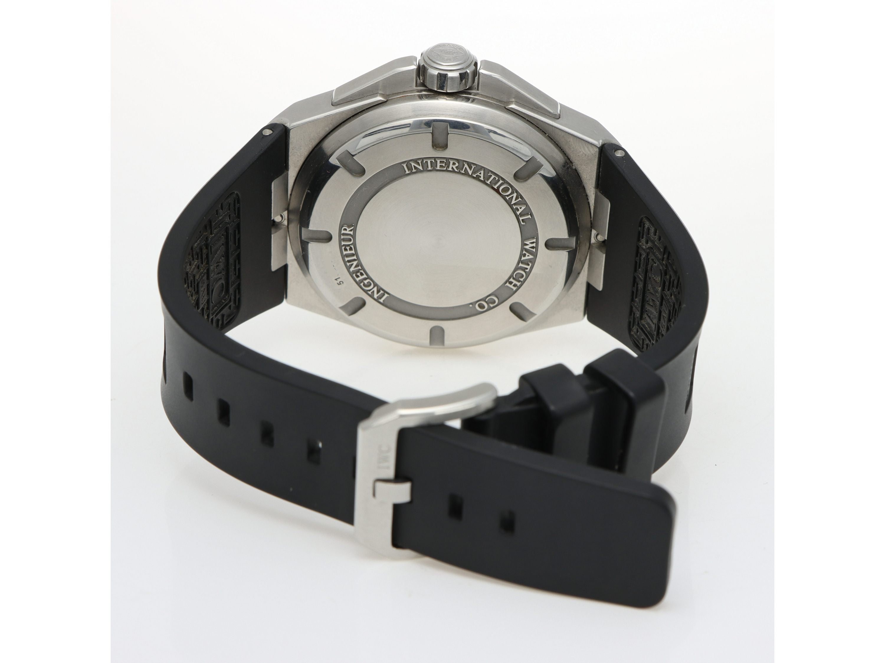 IWC Ingenieur Ref. IW323601 realizzato in acciaio, Quadrante nero, Lunetta fissa in acciaio, cassa di diametro 46 mm. Datario ad ore 3. Corona di carica a vite in acciaio. Bracciale in gomma con chiusura ad ardiglione. Orologio in ottime condizioni. Full Set Anno 2010.