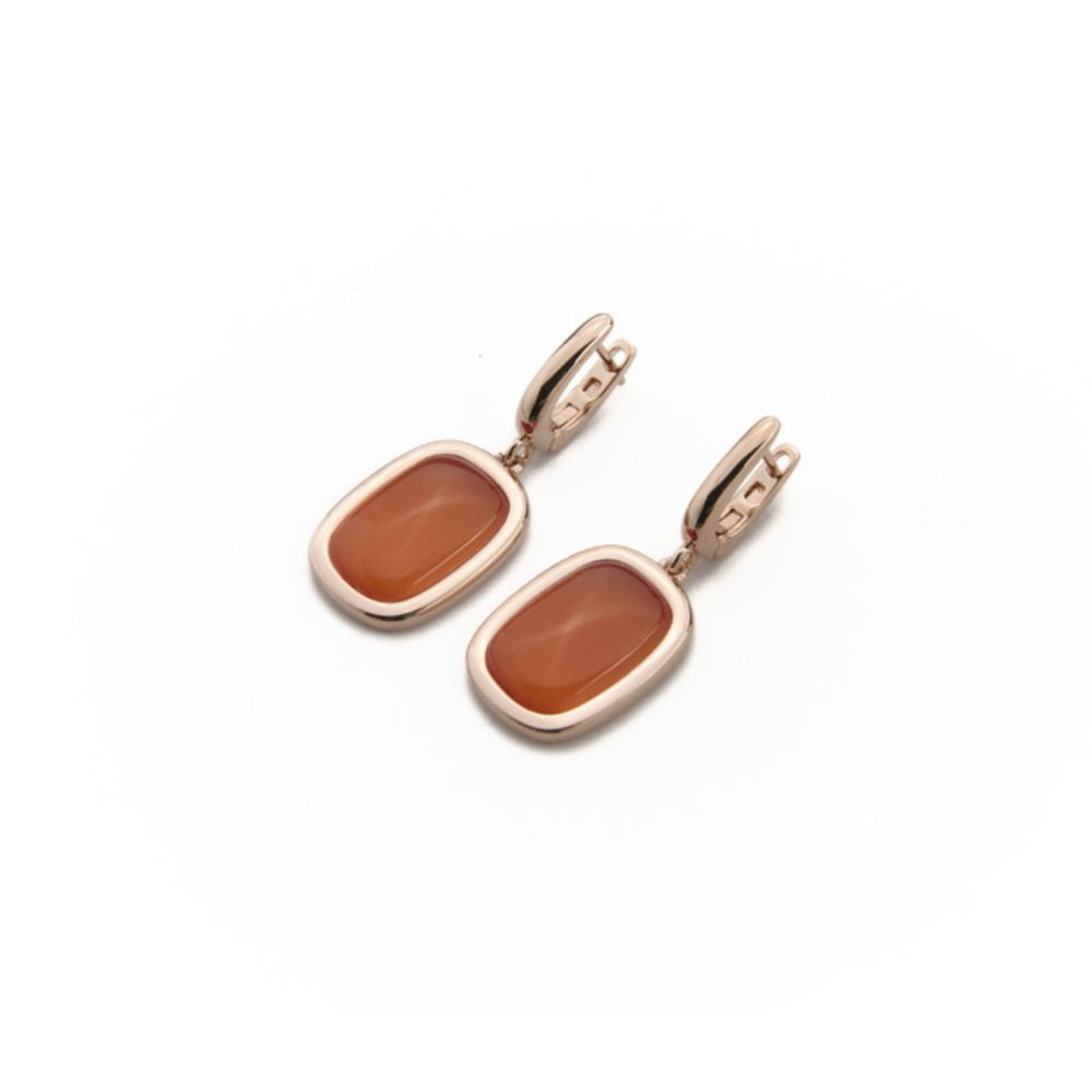 Orecchino realizzato in argento 925 con galvanica in oro rosa impreziosito con quarzi ecologici idrotermali.