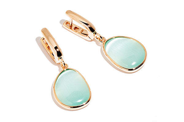 Orecchino realizzato in argento 925 con galvanica in oro rosa impreziosito con quarzi ecologici idrotermali forma a goccia.