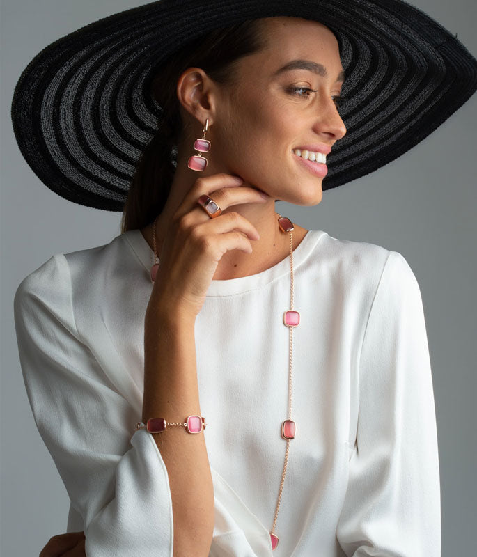 I gioielli Madi sono prodotti in Toscana, realizzati in Argento 925 con finiture in Oro rosé e meccanismi di chiusura di altissima qualità e durata. La collezione Ciliegia è la linea che esalta la freschezza della natura, la delicatezza della donna e le sue tonalità intense ne raccontano la forza.