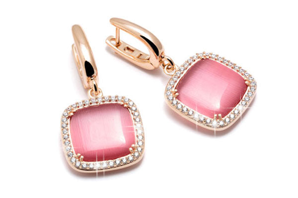 Orecchino realizzato in argento 925 con galvanica in oro rosa impreziosito con quarzi ecologici idrotermali e pavé di zirconi. Disponibili in diverse colorazioni.