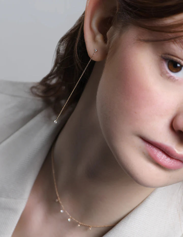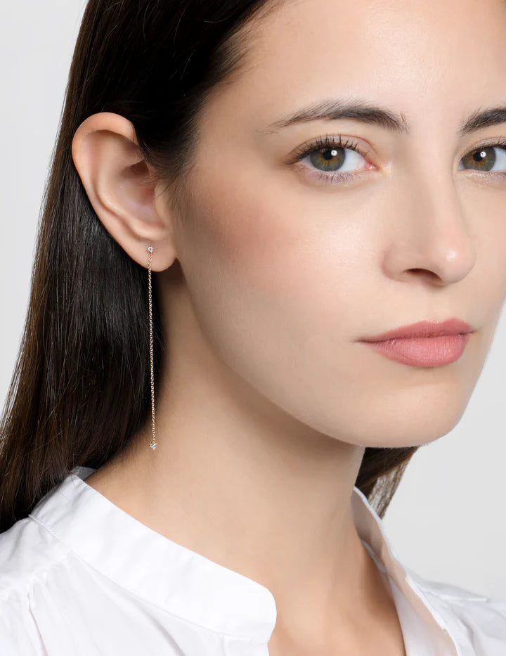 Orecchino singolo in oro rosa 18 kt - Lunghezza catena 7 cm