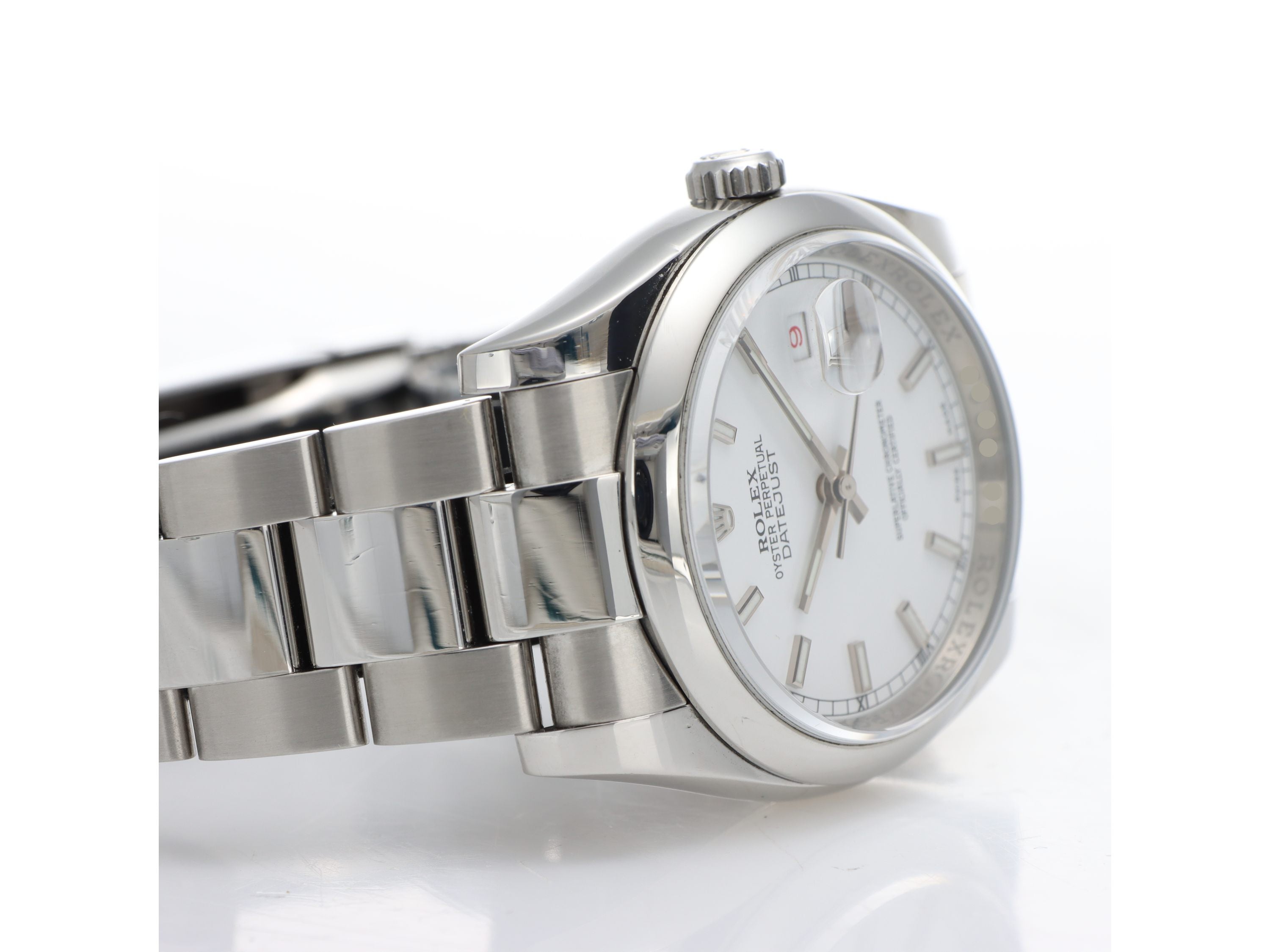 Rolex Datejust Ref. 116200 realizzato in acciaio, Quadrante bianco, Lunetta fissa liscia in acciaio, Cassa di diametro 36mm, Corona di carica a vite, Datario ad ore 3. Bracciale modello oyster con chiusura deployantè. Orologio in condizioni eccelenti. Full Set. Anno 2007 Garanzia Italiana. Revisionato 03/2026