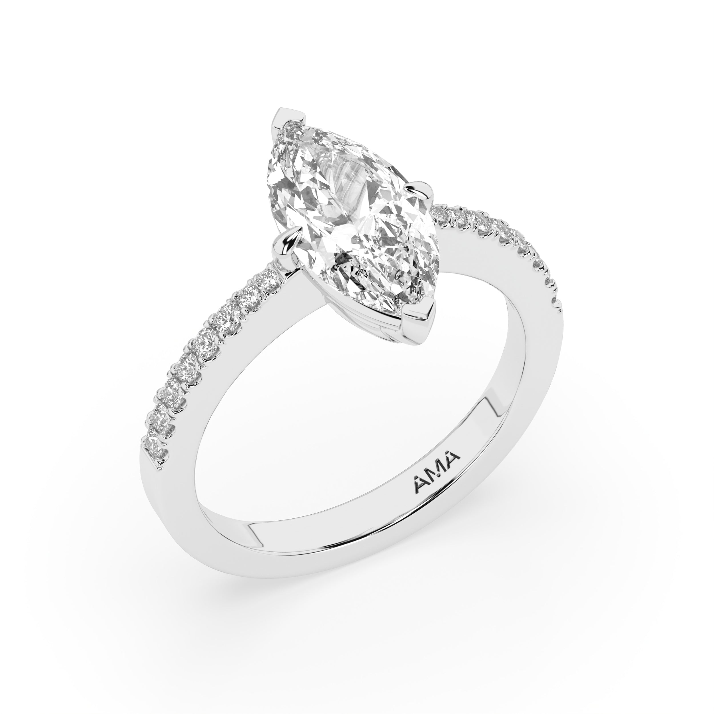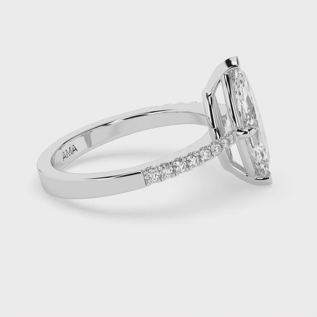 Solitario AMA Pavé Taglio Marquise in oro bianco e diamante lab
