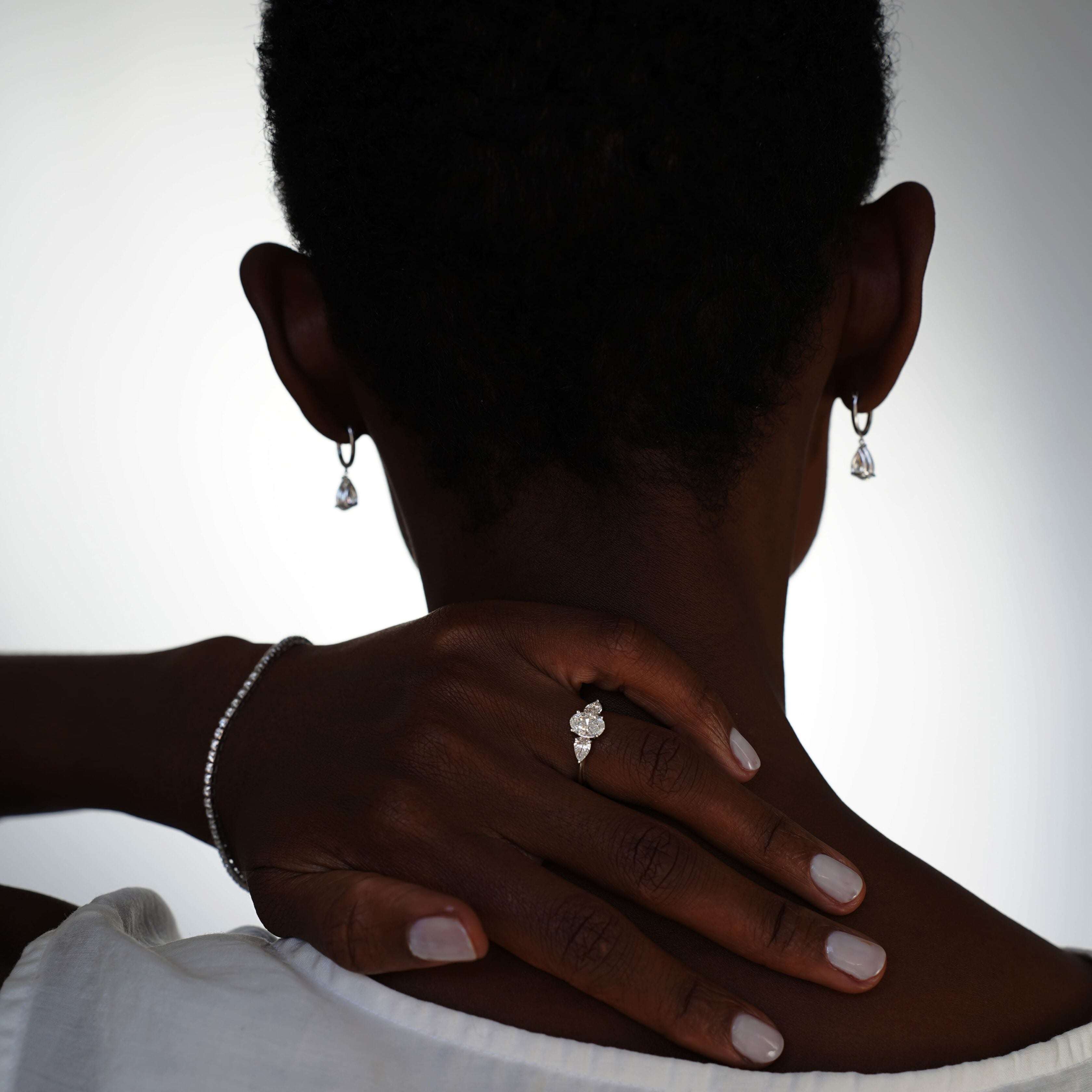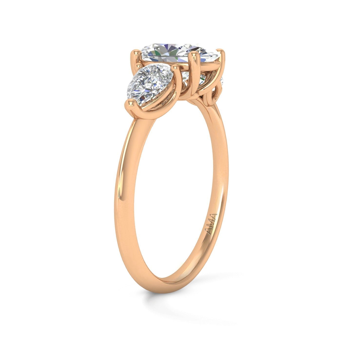Anello Trilogy realizzato in oro rosa riciclato 18kt impreziosito con diamante lab grown taglio Ovale da 1,00 CT e diamanti laterali taglio goccia da 0,30 CT per un totale di 1,60 CT