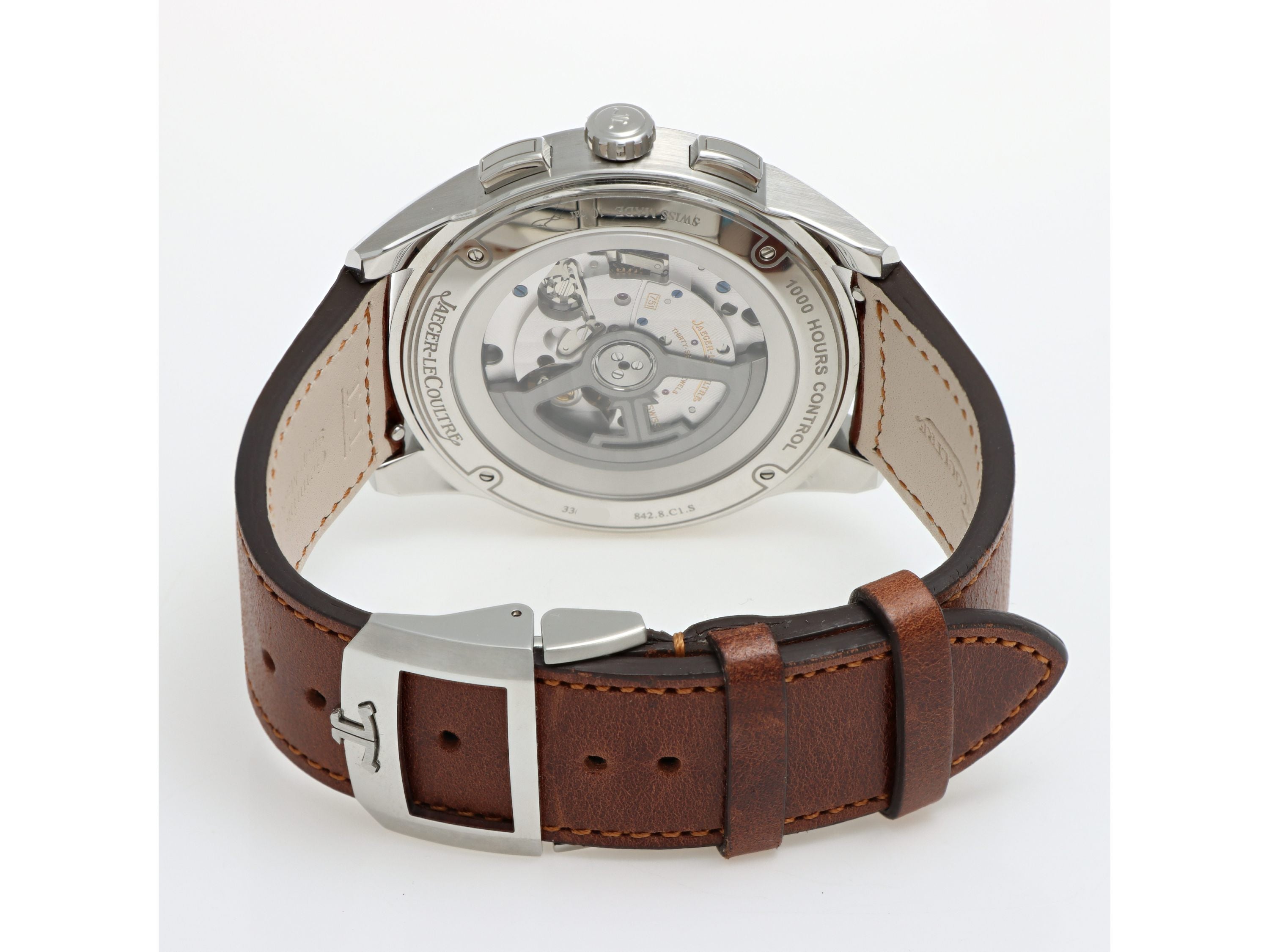 JLC Polaris Chronograph Ref. Q9028471 realizzato in acciaio, Quadrante nero, Lunetta fissa in acciaio, cassa di diametro 42 mm. Contatore delle ore ad ore 9 contatore dei minuti ad ore 3. Corona di carica e pulsanti del crono in acciaio. Cinturino in pelle con chiusura a doppia deployanté. Orologio Mai Indossato. Garanzia datata 05/2025.