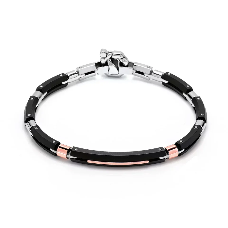 Bracciale Barakà Discovery realizzato in Acciaio con PVD nero, acciaio lucido e oro rosa 18kt