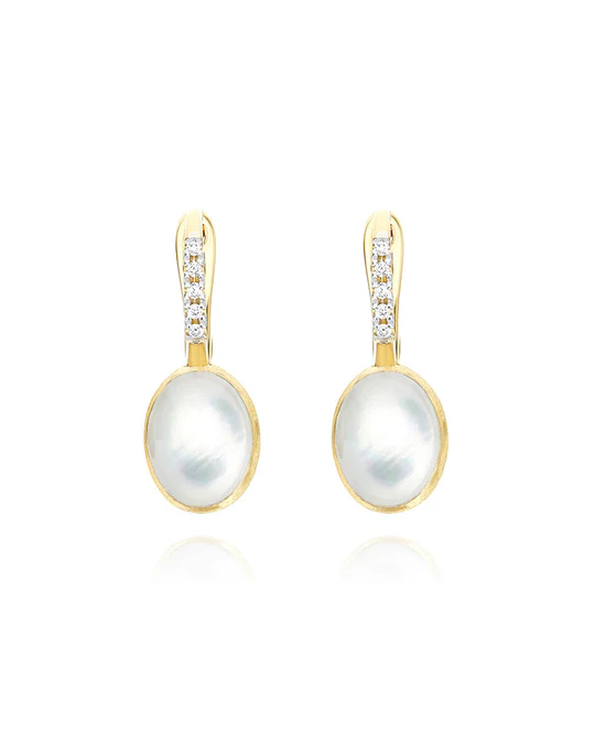Orecchini Ciliegine Nanis Dolcevita in oro inciso con diamanti, cristallo di rocca e Madreperla (piccoli)